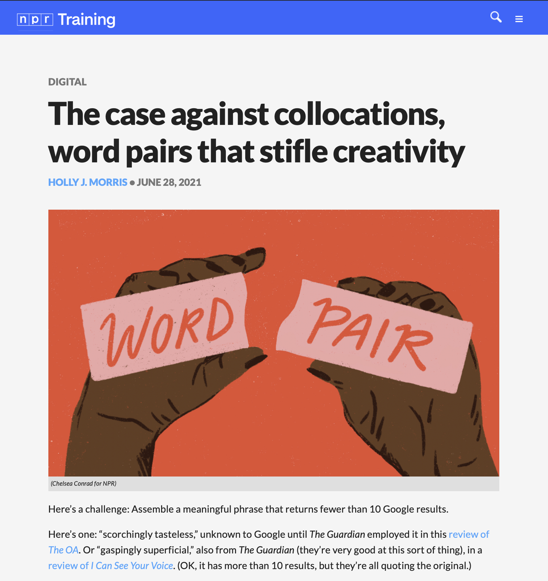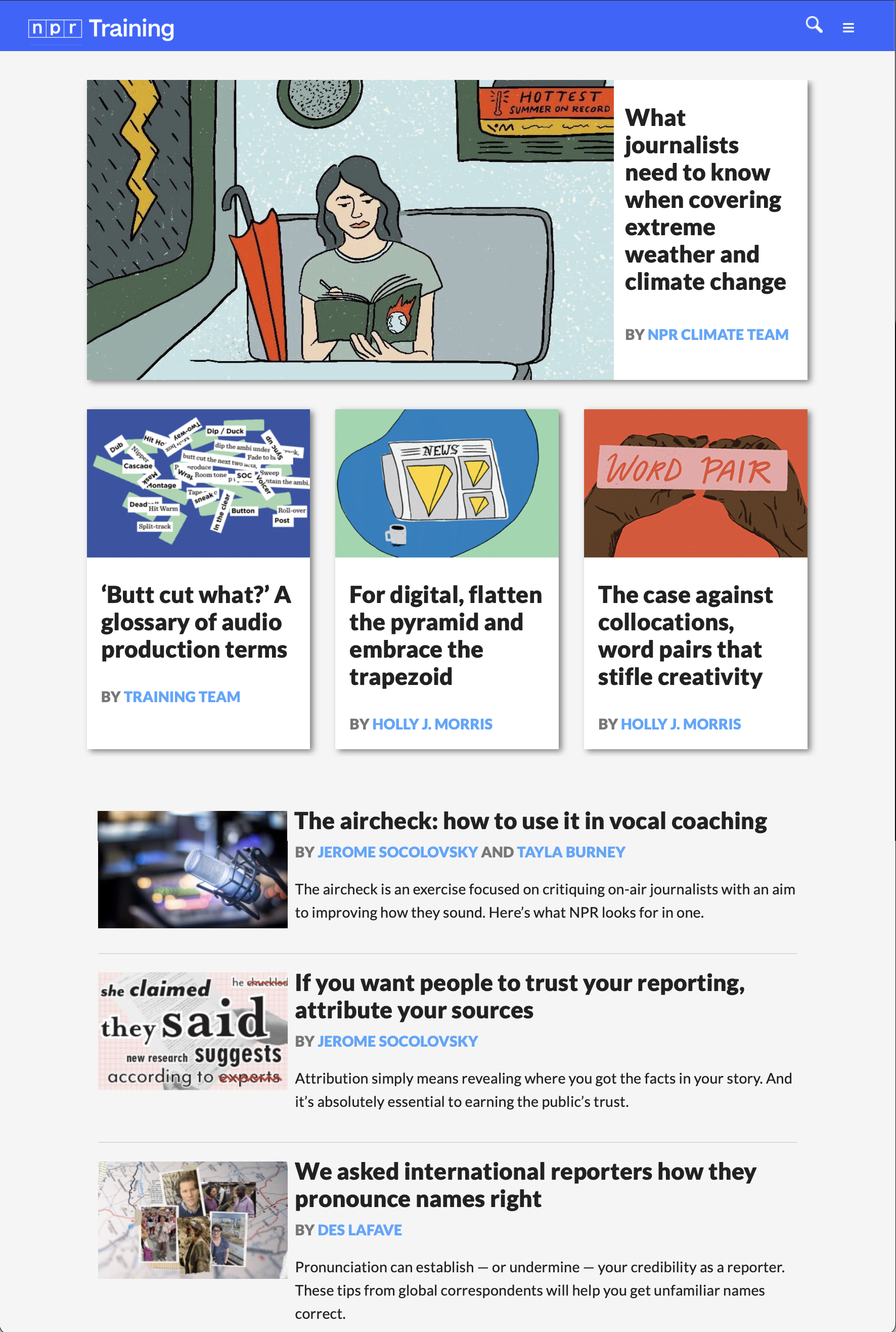 The version of NPR Training's website that I built was sunsetted in May 2025. The content now lives here. This is what mine looked like: